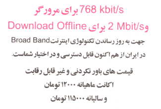 ابرار اقتصادی درج گرديد. محصول شركت مذکور، اينترنت پرسرعت با مشخصات