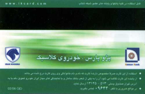 غير فعال كردن يا اعمال تغييرات در كارت، به نمايندگي ايران خودرو يا ساير