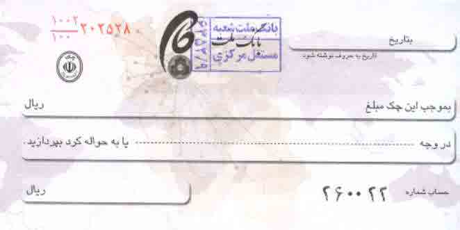 1- هر بانک برگههای چک جديد با متنی برای تضمين چک،